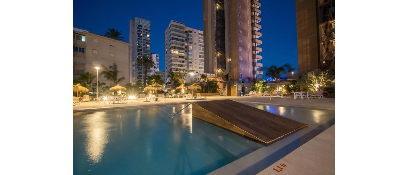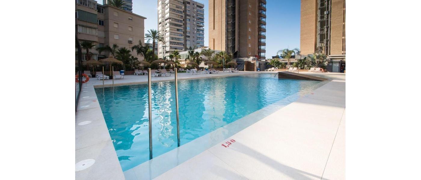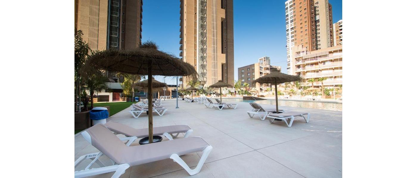 Dit mooie 4 sterren hotel heeft een ideale ligging in het nieuwe centrum van Benidorm direct tegenover het mooie Levante strand. De afstand tot het oude centrum bedraagt 750 meter.