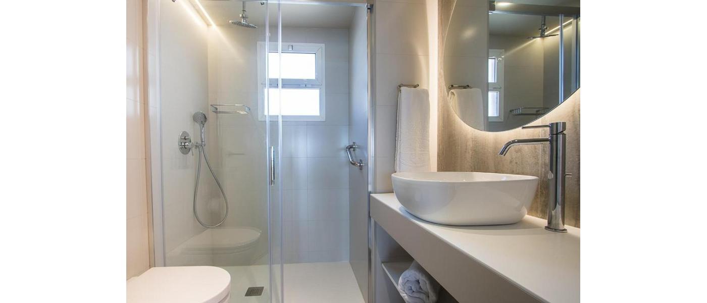 • Badkamer met douche, föhn, make-up spiegel en toilet