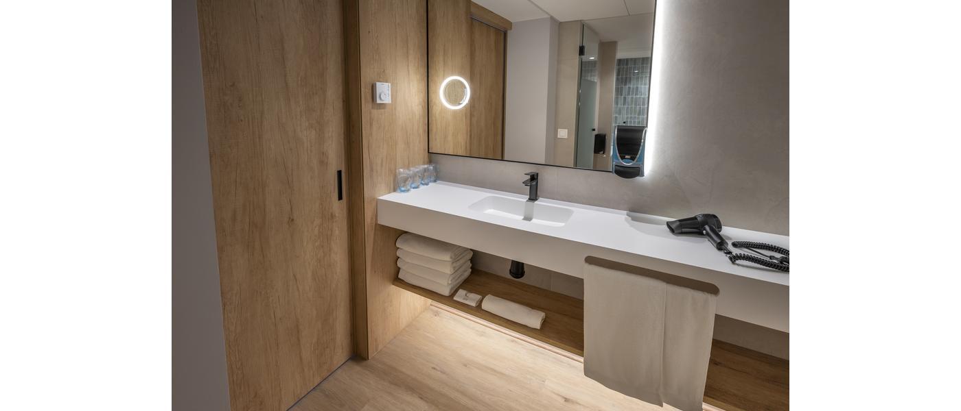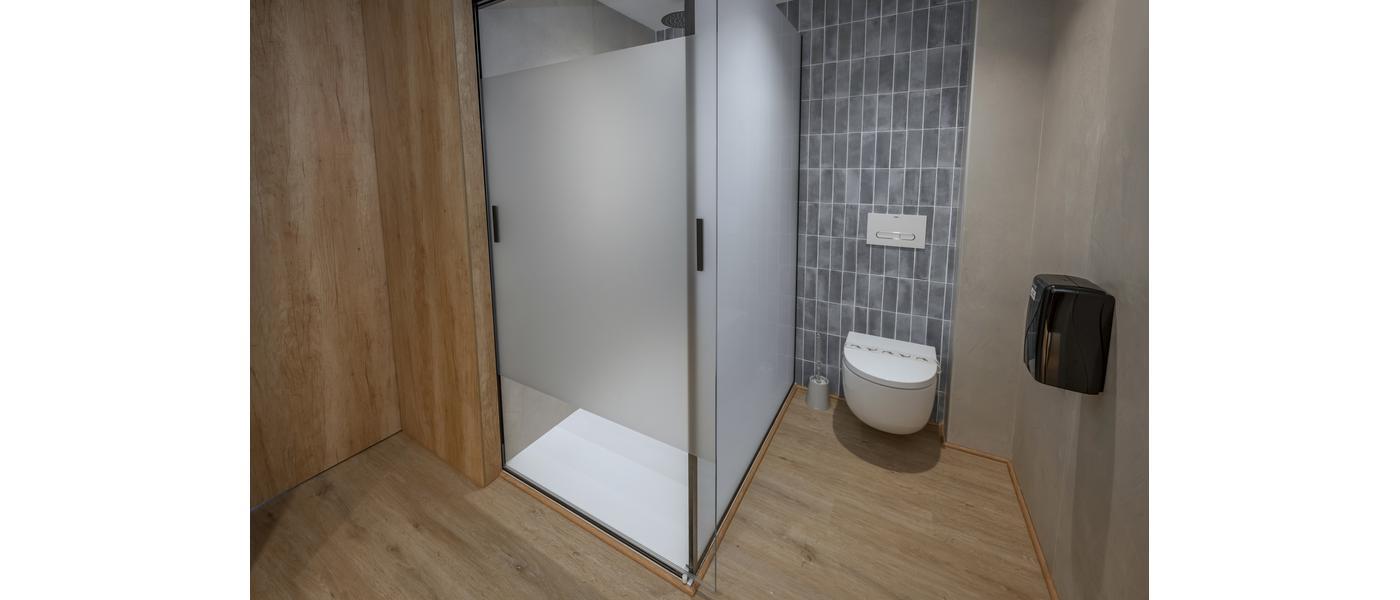• Badkamer met douche, föhn, make up-spiegel en toilet