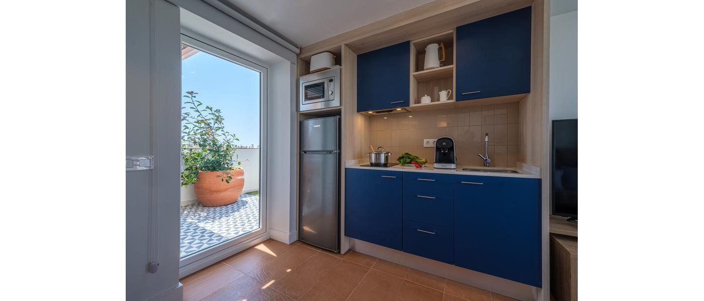 • Kitchenette met inventaris en o.a. koelkast (+ vriesvak), 2-pits keramische kookplaat, Nespresso koffiezetapparaat, waterkoker en magnetron